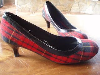 Preciosos zapatos del nº 40, de tela escocesa, en rojo y negro, tacón de 4 cm. comodísimos. Usados pero en perfecto estado.